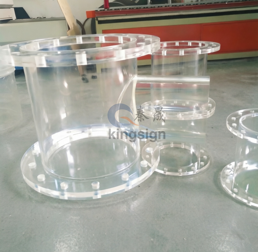 Тези акрилни тръби с фланци се използват широко в системи за пилотни инсталации, образователни изследователски установки, оборудване за мониторинг на околната среда и системи за разпределение на флуиди с ниско налягане, където прозрачността и надеждността са от съществено значение. Независимо дали имате нужда от стандартен размер или напълно персонализирано решение, Kingsign доставя акрилни фланцови компоненти, произведени с строги толеранси за постоянна производителност във вашите операции.